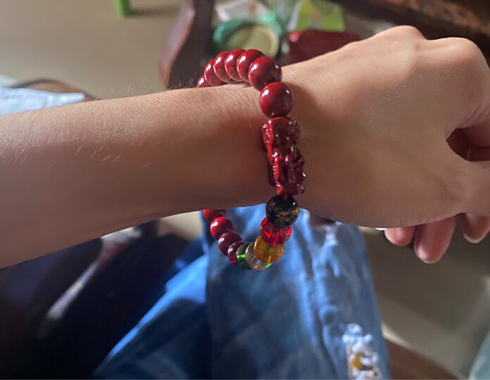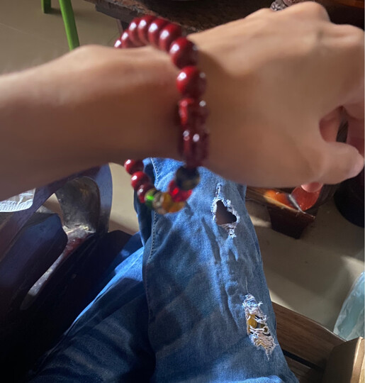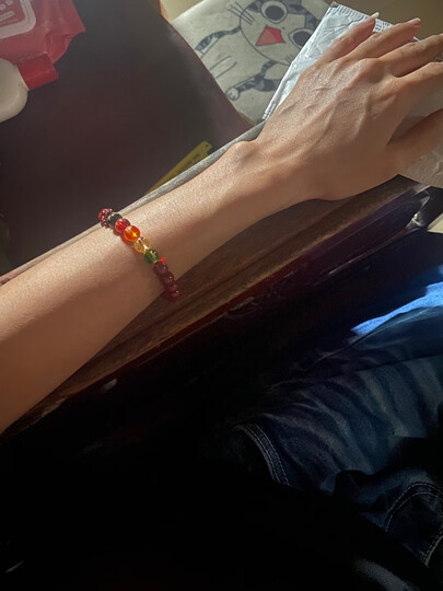 不知道都是谁在造谣?我拍之前有简单的看了下评论,首先质量怎样咱先不说,就论这个尺寸,我看到好几个评论都在说小的可怕,什么小婴儿小孩子戴的,我心想那么小的话,那我肯定可以戴,结果还是上当了,上手效果你们自己看,足足大了4-5颗珠子,导致滑上滑下的非常碍事。