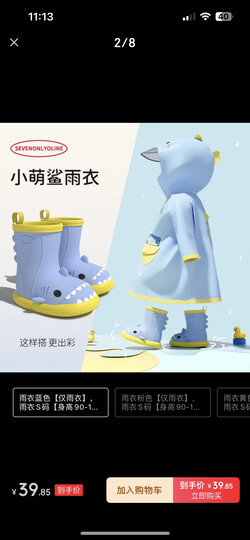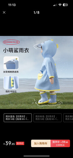 SEVEN ONLY OLINE小萌鲨儿童雨衣男童女孩防水防滑幼儿园专用2025新款宝宝 雨衣蓝色【仅雨衣】 雨衣M码【身高101-115穿】