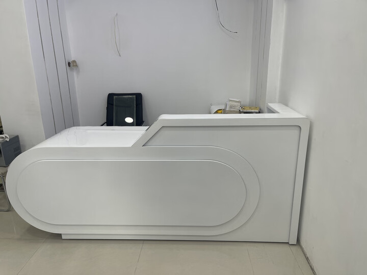 奶油风美容院前台接待台医美口腔牙科诊所吧台桌服装店烤漆收银台 米色 260*60*100CM