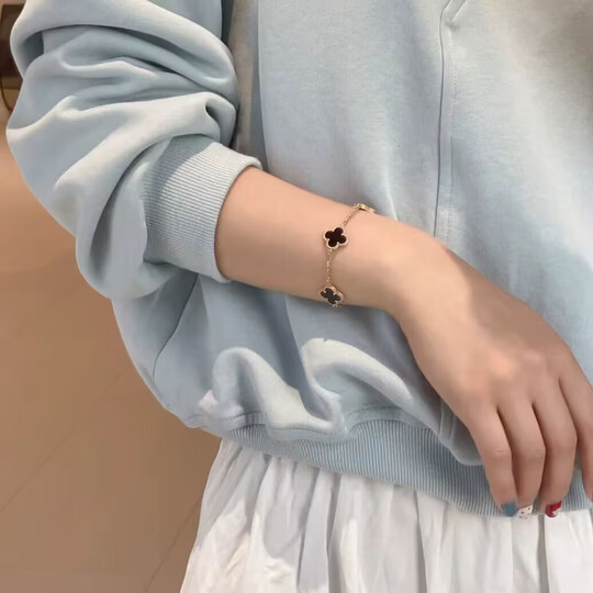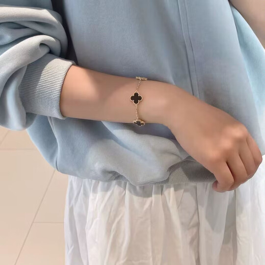 蔻诗哲 COASZE18K玫瑰金四叶草五花手链女AU750彩金红玉髓手饰送女友 五花手链【黑玛瑙】黄金色