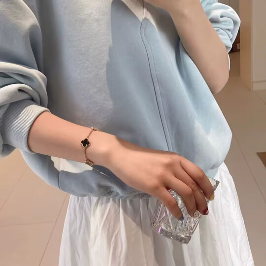 给闺蜜买的生日礼物,她收到直接发了朋友圈!礼盒包装很精致,拆开的时候仪式感拉满。她说四叶草的寓意特别好,而且戴在手上刚好贴合手腕,不松不紧,上班戴也不夸张。重点是她是敏感肌,戴了半个月没过敏,这一点太加分了!