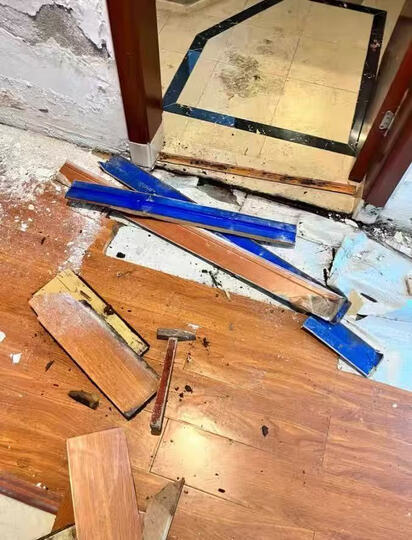 三个房间的木地板拆除,总共30方,拆完全部拉走,省了不少钱,拆的也干净,哈哈