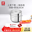 双立人(ZWILLING)双层汤锅蒸笼不锈钢深烧锅煲汤炖肉锅无涂层煮汤锅炖锅煮粥煮面锅 深烧锅+蒸笼 20cm