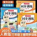 三年级上册同步训练同步练习册2026人教版新版语文书数学英语同步训练3年级上下册一课一练小学3年级随堂练习教材同步测试卷全套老师推荐部编版课本同步作业课课练测试卷 三上【全3本】语文+数学+英语同步训