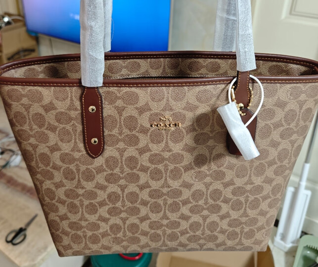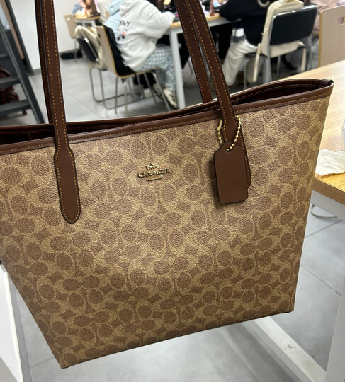蔻驰(COACH)【官方】奥莱女士女包经典老花CITY单肩通勤拉链托特包city30 IM/棕黄色/棕色(新版)