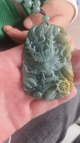 千载一玉翡翠龙牌吊坠 男士油青飘黄翡生肖龙玉石玉坠玉龙玉佩 带挂绳 款二 QZK2926i