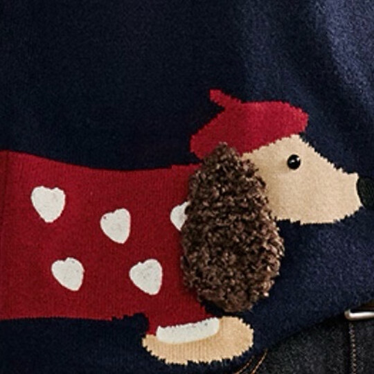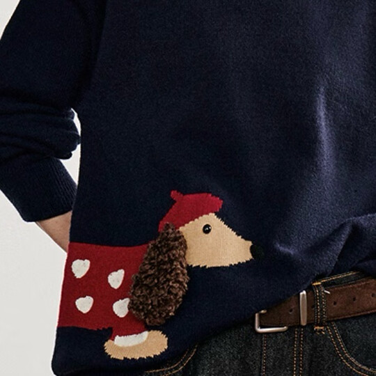 初语腊肠狗童话风圆领针织女2025秋季新款包芯纱宽松黄色毛衣上衣 藏青色 L