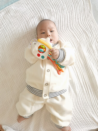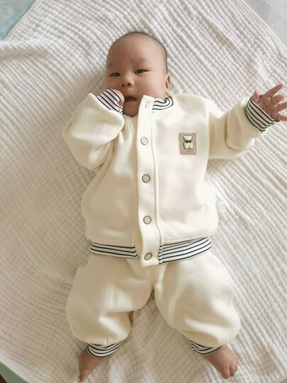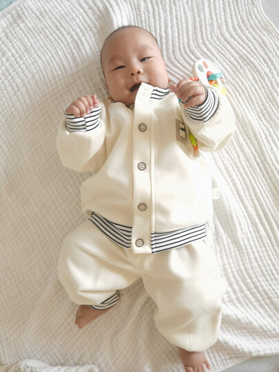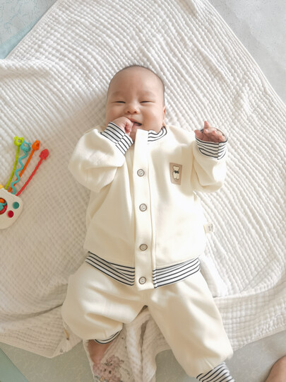 哈趣猴婴儿衣服春秋季绵绸儿童睡衣新生儿分体套装男女宝宝轻薄家居服 【两件套】白色-圆领款 80 【建议73-80cm,18-21斤宝宝】