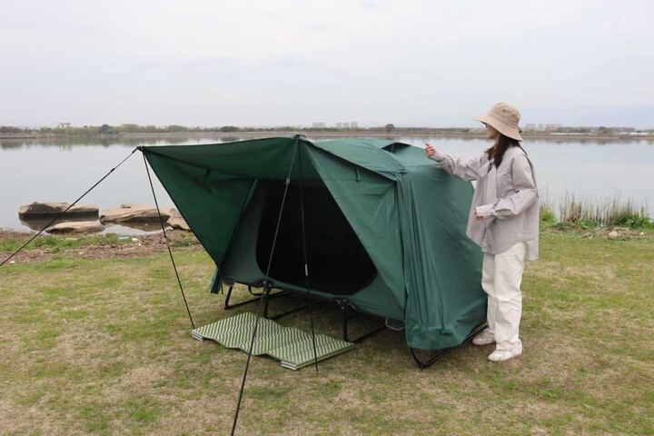 美兰登高档户外离地帐篷垂钓帐篷单双人全自动野外露营帐篷加厚防暴雨 【双人军绿】210*120*120cm标高
