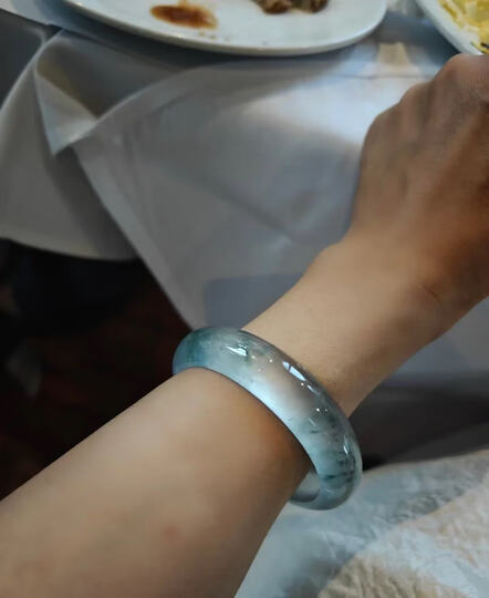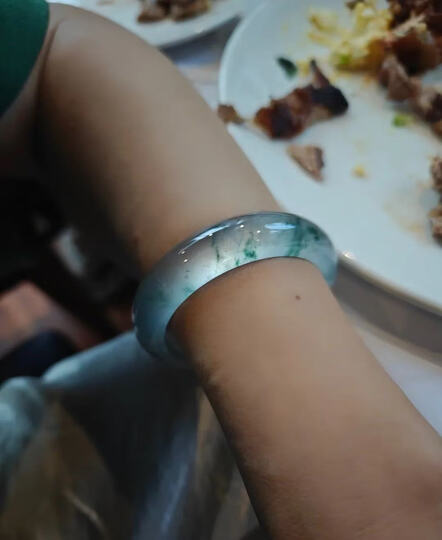 缅甸a货冰种飘蓝花贵妃翡翠手镯正品女款正圈云南玉手镯热卖款