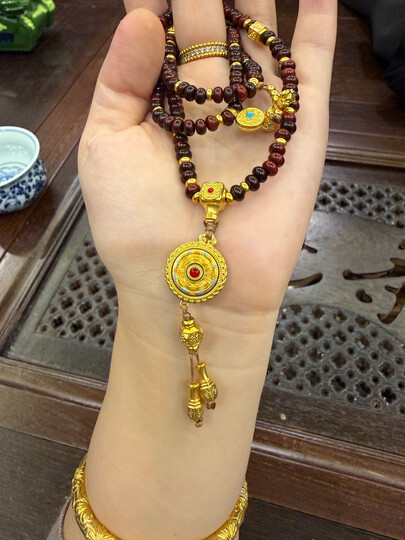 周大生吉祥布达拉系列黄金八宝罗盘小叶紫檀手串足金福慧多吉手链送女友 福慧多吉手串 金重9.85g