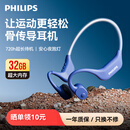 飞利浦TAA6609CBL骨传导蓝牙耳机内置32G内存卡MP3开放式超长待机10个小时运动户外骑行夜跑灯后挂式挂耳 蓝色