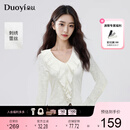 朵以2025秋季新款优雅纯欲珍珠荷叶边V领蕾丝喇叭袖修身显瘦上衣 香草冰 (卡码建议拍大) L