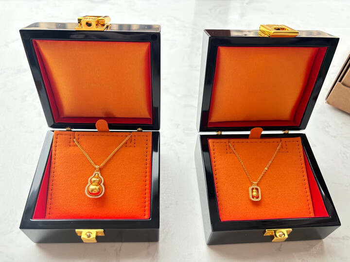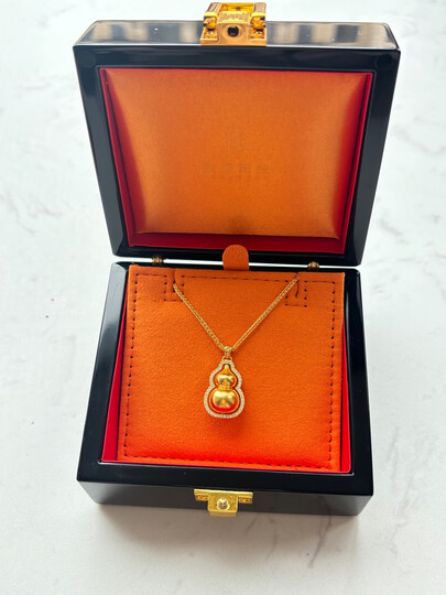 老铺黄金古法手工足金项链 · 葫芦(1号)钻饰吊坠(金链款) 中号肖邦链款金重约18.2g