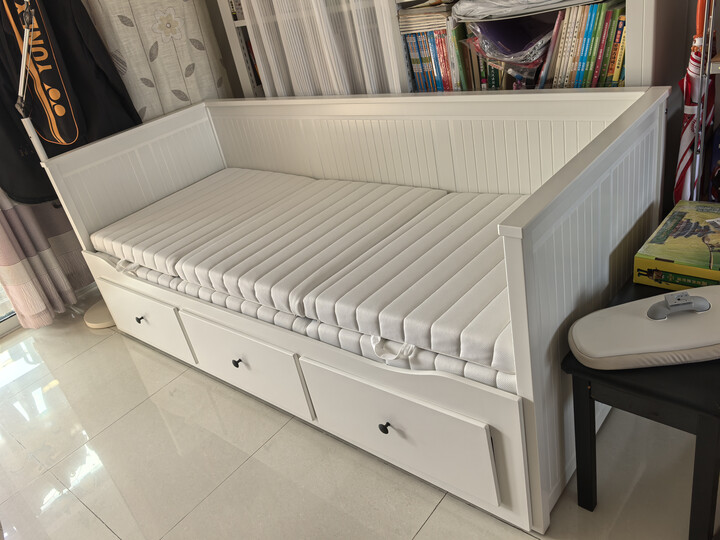 全程按照说明书,自己拼搭完成,耗时大半天时间,搭完了还是很有成就感的,这下家里来人也有地方睡了,睡着很舒服,抽屉用来放被子正好