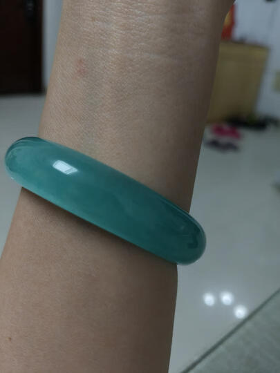 翡翠手镯玉手镯缅甸老坑冰糯种手镯女款正圈油青飘花玉镯子正品平安镯 圈口55-56mm