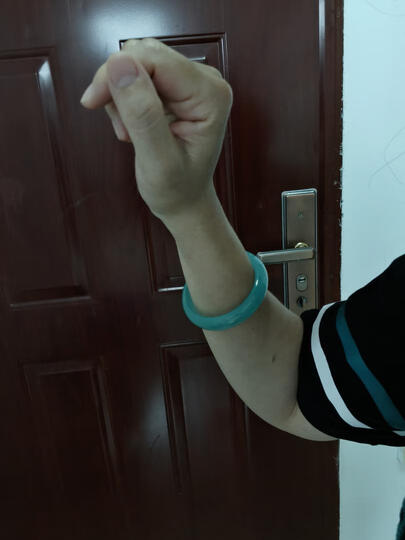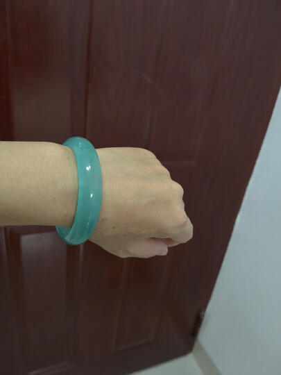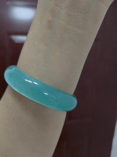 老坑翡翠手镯缅甸玉手镯女款平安镯冰种浅绿油青飘花玉镯子正圈 圈口55-56mm