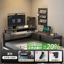 左度宿舍床上电脑桌转角学习桌大学生上下铺懒人书桌笔记本游戏小桌子 【可拆卸边桌+增高架】静谧黑90cm 赠支撑腿+防撞角