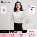 朵以2025秋季新款重工新中式立领排扣半门襟亮片蕾丝刺绣提花衬衫 香槟杏 L
