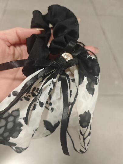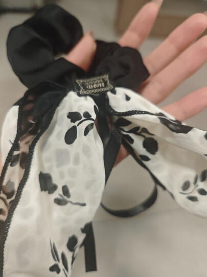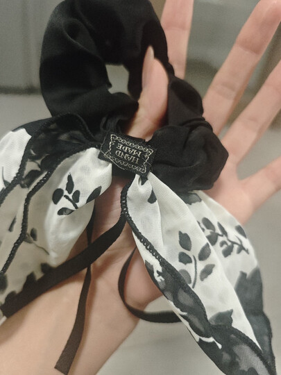加恩倍法式夏发饰新款优雅花朵飘带蝴蝶结复古大肠发圈高级感头饰头绳女 水墨发圈白色1个