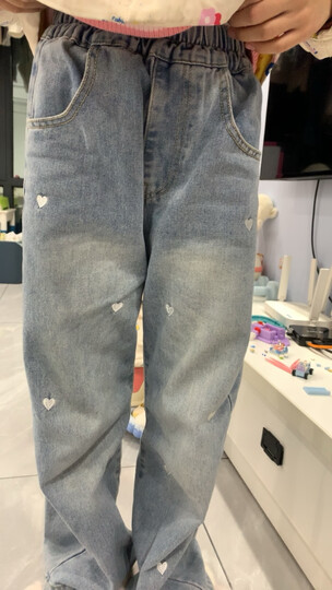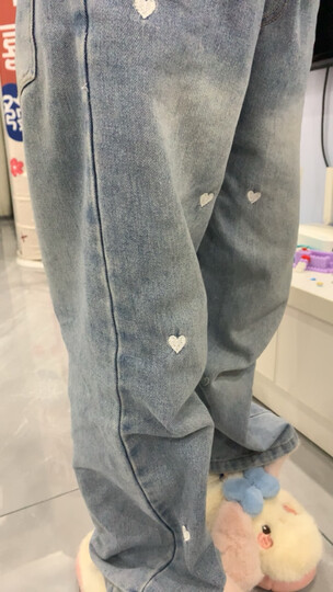 小猪班纳女童牛仔裤2025春秋新款中大童秋天宽松裤子儿童韩式直筒裤 【爱心刺绣牛仔裤】ACNK浅蓝 140 【推荐体重56-68斤】