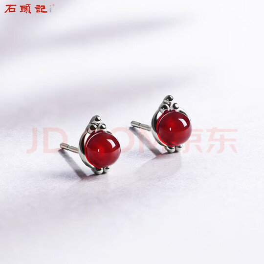 石头记(istone)南方佳丽红玛瑙耳钉玛瑙耳环耳饰新中式生日礼物送女友