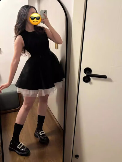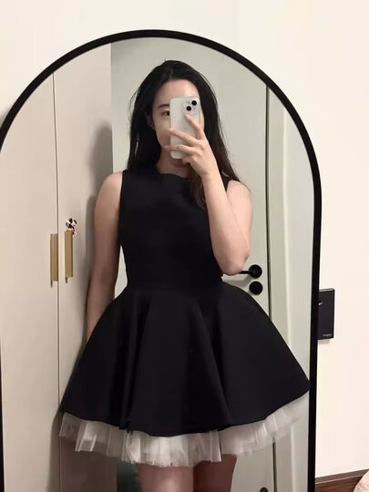 贞喜气赫本风黑色小礼服连衣裙女高级感气质蓬蓬裙公主裙法式网纱短裙 黑色 M 后拉链