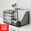 办公室桌面文件置物架多功能金属多层文件夹收纳盒书报架可放A4纸架多层大容量文件框文件夹 黑色-A4置物架左