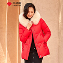 千仞岗秋冬季羽绒服女士短款大毛领连帽外套百搭休闲气质时尚保暖防寒服 经典红 M (165)