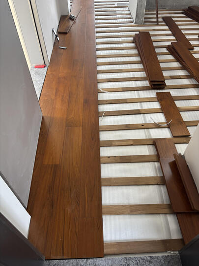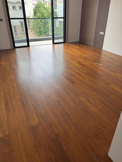 地板真实材料,铺完非常漂亮,和客服沟通顺畅,前前后后聊了一个月才下单,送货到家到安装都很好,服务周到
