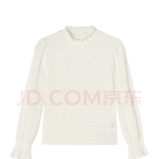 香影法式白色蕾丝衫女2025秋冬新款半高领正肩打底衫气质镂空上衣 鹭白 M 160/84A/95-110斤