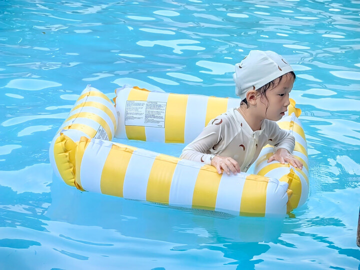 带孩子玩水世界,去大泳池才用的上,一出场,好多人投来羡慕的目光,哈***以前那些大浮床什么好多了,便宜,又不容易翻,坏了也不心疼