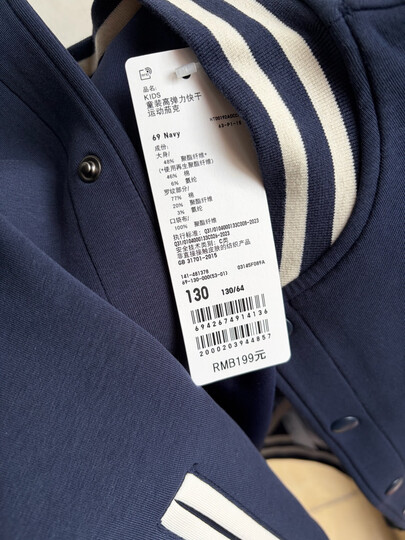 优衣库童装男童女童高弹力快干运动茄克外套夹克481378 69 藏青色 130