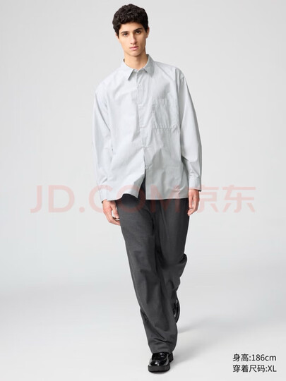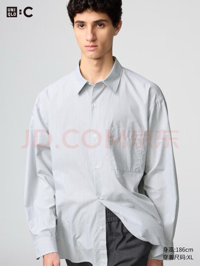 优衣库合作款/男女装宽松条纹衬衫/长袖衬衣休闲25秋冬新款480763 55 青绿色 L /175/100A