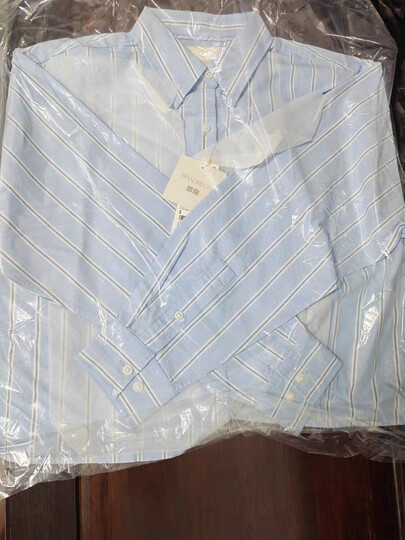 优衣库女装男装牛津纺箱型条纹衬衫/长袖合作款新款479975 483601 479975/61水蓝色 M
