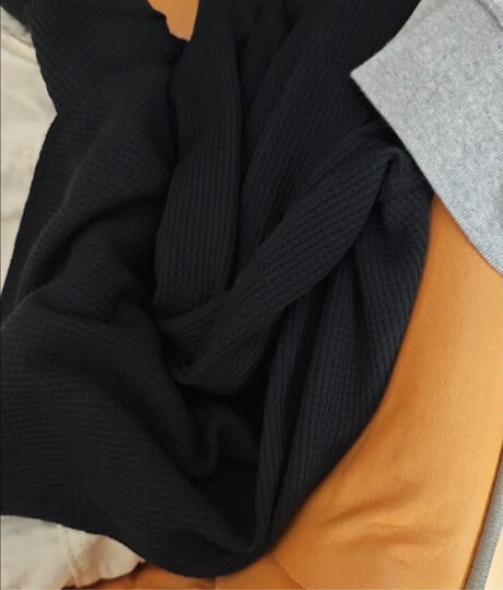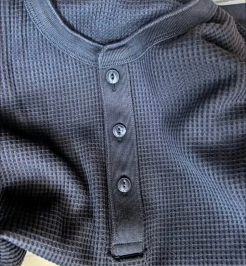 优衣库男装女装情侣华夫格亨利领套头衫长袖T恤479784 482766 479784/09黑色 L