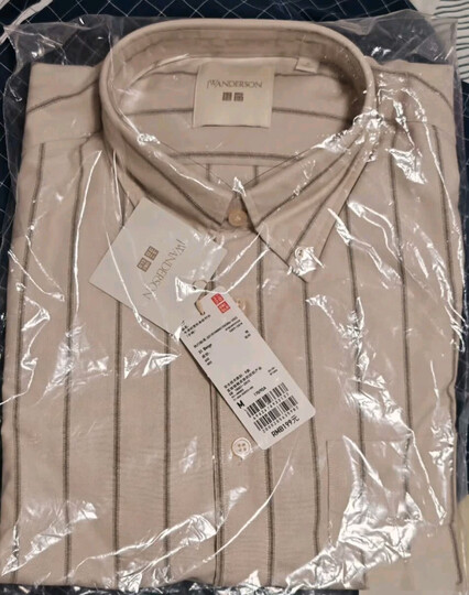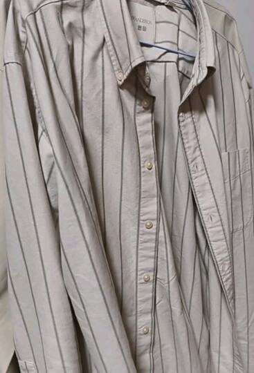 优衣库合作款/男装女装牛津纺宽松条纹衬衫/长袖衬衣25秋冬480802 31 米色 M /170/92A