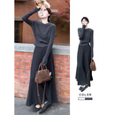 艾珠儿(Aizhuer)法式高级感灰色针织连衣裙子女秋冬季2025新款小个子气质长裙套装 浅灰色上衣+深灰色半身裙 均码 (建议80-140斤)