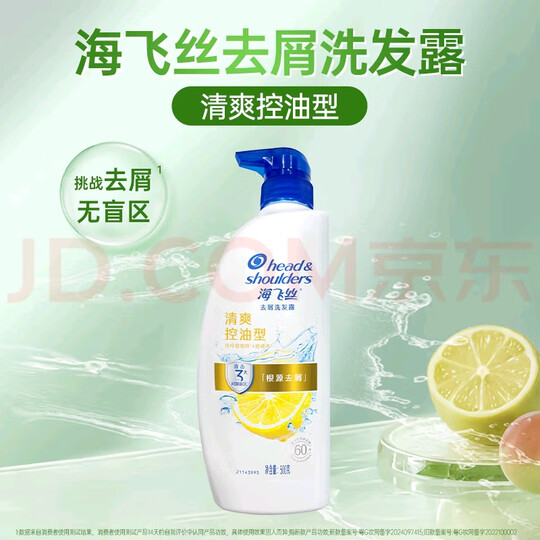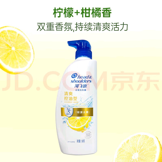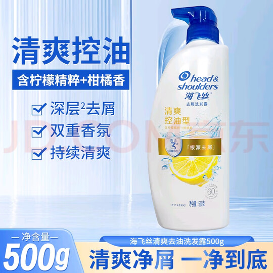 海飞丝清爽去油型洗发水洗发露清洁柠檬洗头膏男女士正品 清爽控油500g*2瓶