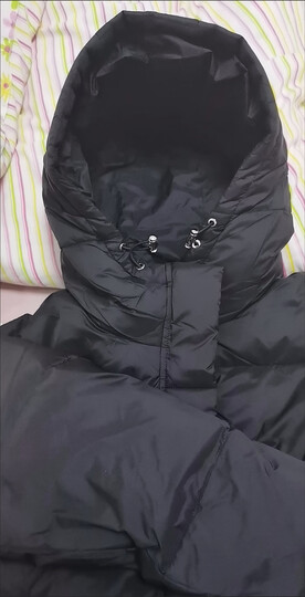 雪中飞抽绳连帽羽绒服女装冬季通勤居家百搭款鸭绒保暖松紧羽绒外套衣服 黑色 S (155)