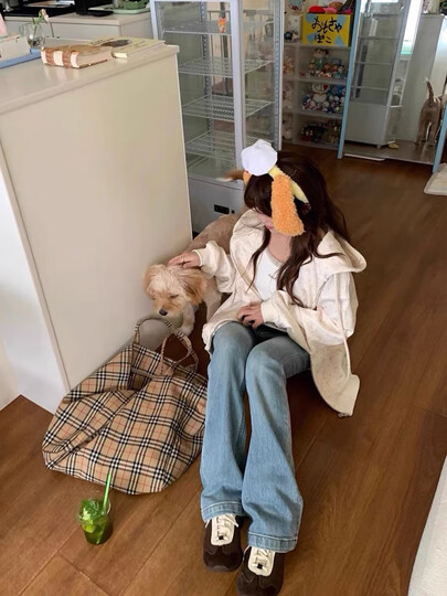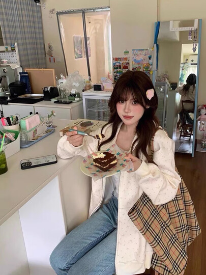 南木熊卫衣女学生连帽碎花卫衣外套女2025秋开衫拉链宽松休闲学院风薄款 米杏色M【80-105斤】