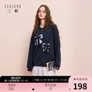 三彩2025冬季新款蝴蝶结卫衣加绒圆领套头衫休闲宽松M 藏青色 L 165/88A
