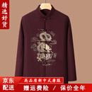CANDYPRINCE 唐装男中老年人过寿生日衣服国风中式爸爸装本命年衣服毛呢外套 紫红/上衣 XL /175-(建议130-145斤)