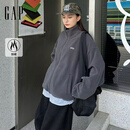 盖璞Gap女装2025秋季新款刺绣logo摇粒绒宽松百搭拉链立领外套829622 灰色 M (165/88A) 亚洲尺码