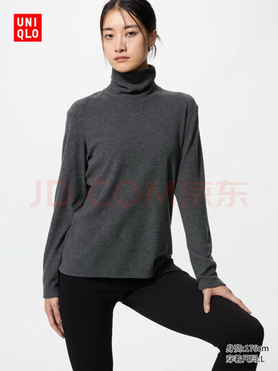 优衣库女装HEATTECH摇粒绒两翻领套头衫/长袖25秋冬新款479608 07 青灰色 M /160/84A