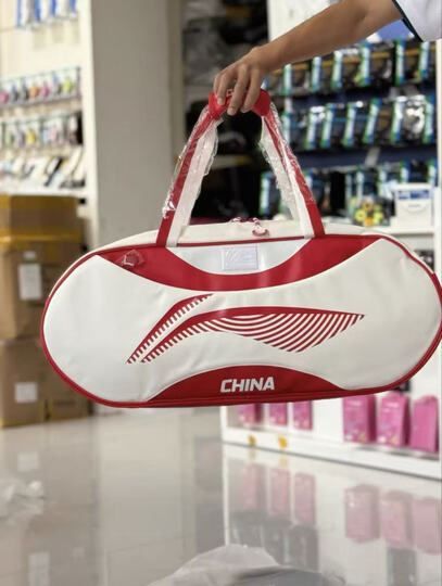 李宁(LI-NING)羽毛球包新款大容量运动单肩手提隔热拍层六只装ABLV081 ABLV081 白红