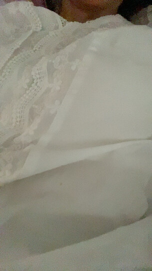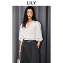 LILY2025秋新款女装法式重工花边V领全棉白色泡泡袖套头雪纺衫 601白色 M