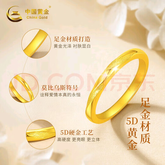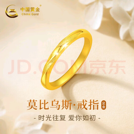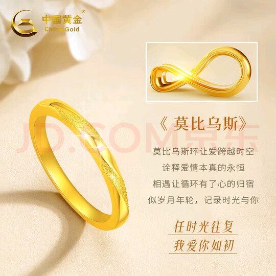 中国黄金莫比乌斯黄金戒指女款足金戒指圣诞节礼物送女友老婆妈妈结婚 莫比乌斯黄金戒指#13+挚爱玫瑰礼盒-0.75