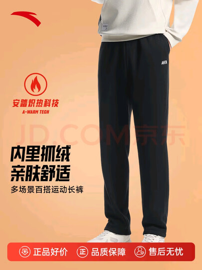 安踏男裤运动裤加绒男士秋冬季新款加厚保暖直筒休闲卫裤针织长裤子 【针织加绒款】基础黑-3 L (175) /适合120-140斤