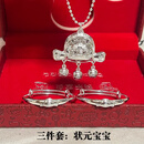 999足银状元宝宝纯银锁套装小孩婴儿童礼物满月百天周岁生日礼物 状元宝宝三件套/送宝宝专属礼盒